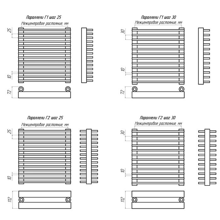 Стальной трубчатый радиатор 1-колончатый КЗТО Параллели Г 1-1000-37 шаг 25